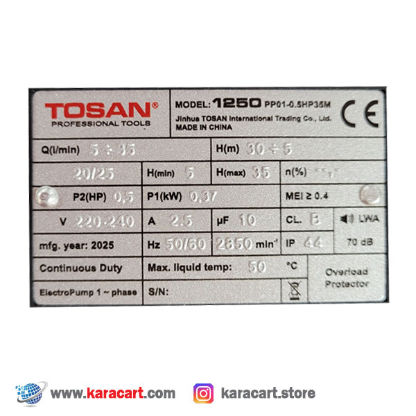 حداکثر دبی خروجی: 35 لیتر بر دقیقه